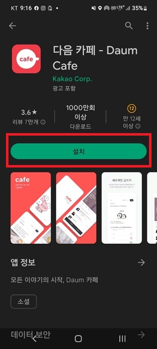 1. 다음카페 앱 설치 버튼을 이용해서 다운로드 후 설치를 진행합니다.