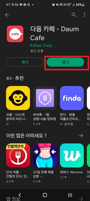갤럭시 : 구글 안드로이드 다음 카페 - Daum Cafe 설치하기