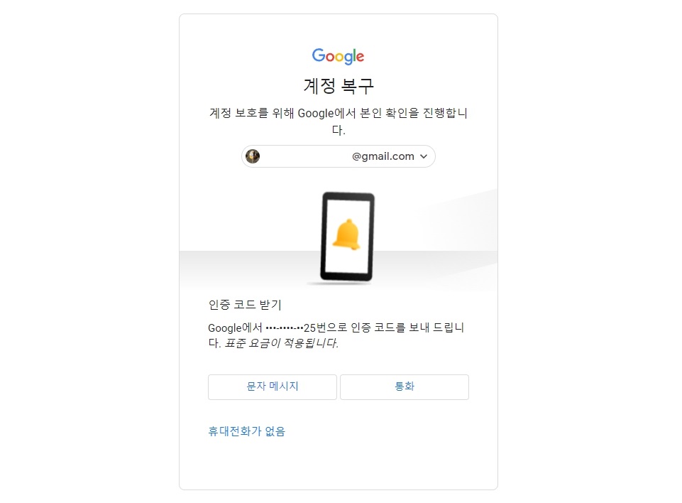 - 지메일 앱에 로그인된 폰으로 알람 메시지를 전송해서 인증을 통해 재설정이 가능합니다.